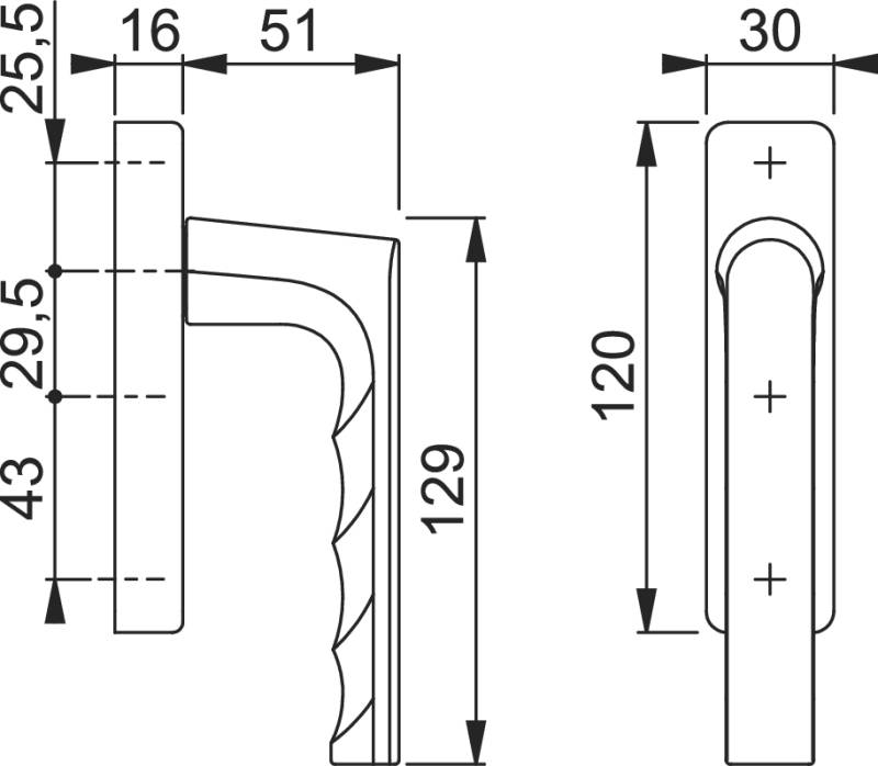 Demi-garniture en aluminium HOPPE Ergo20 pour portes-fenêtres coulissantes :